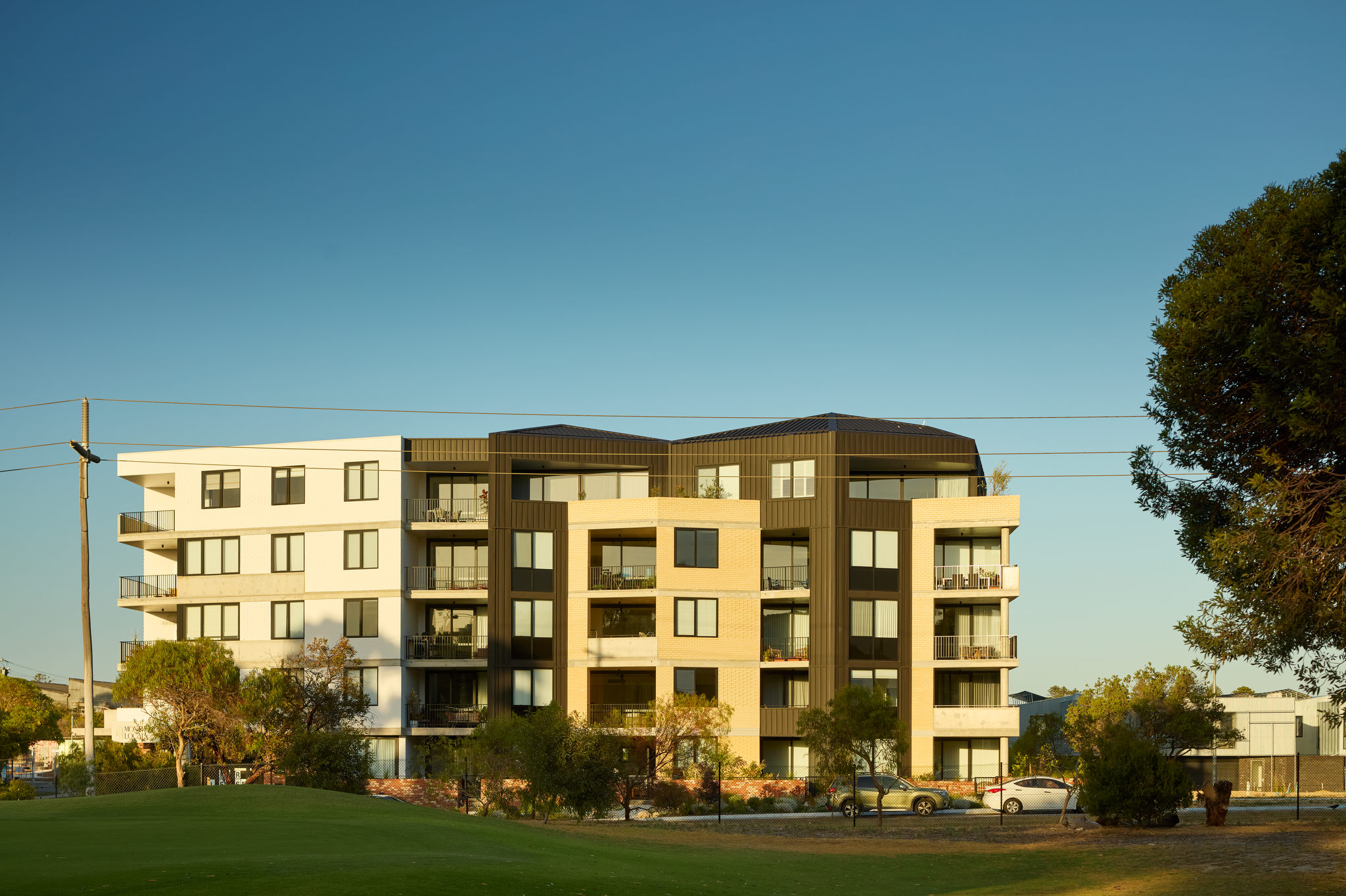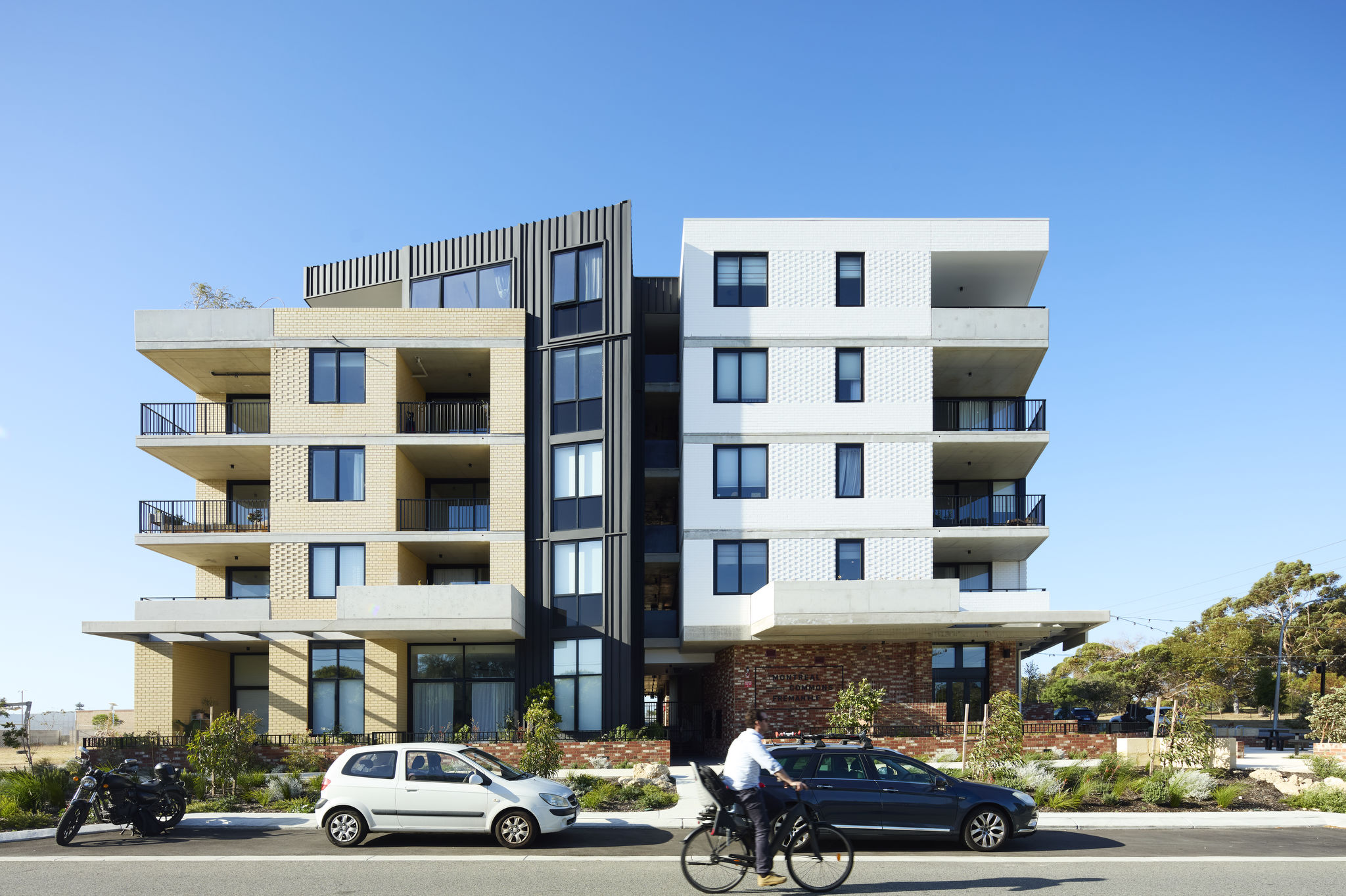 Designed by Hillam Architects, the four- to five-storey mixed-use apartment building, named Montreal Commons, is the first building to be approved for Development WA’s Knutsford East Village.