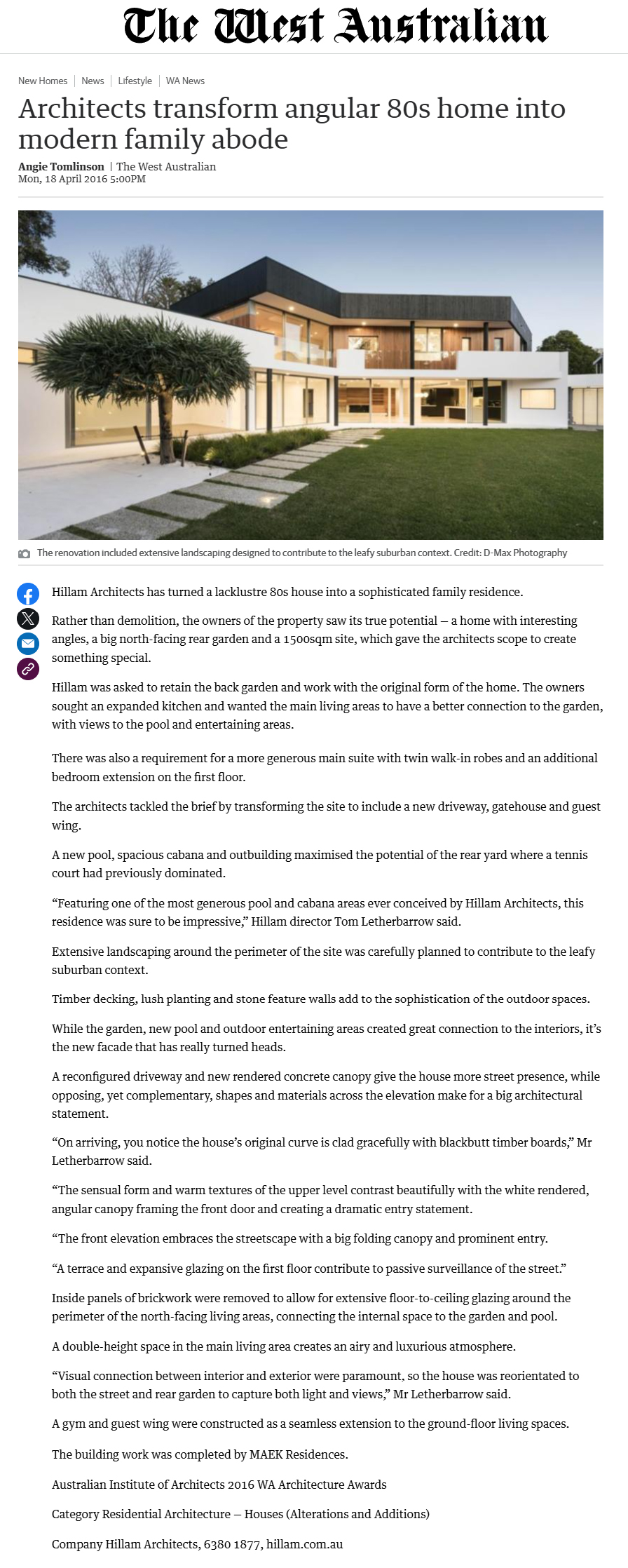 Hillam Architects has turned a lacklustre 80s house into a sophisticated family residence.