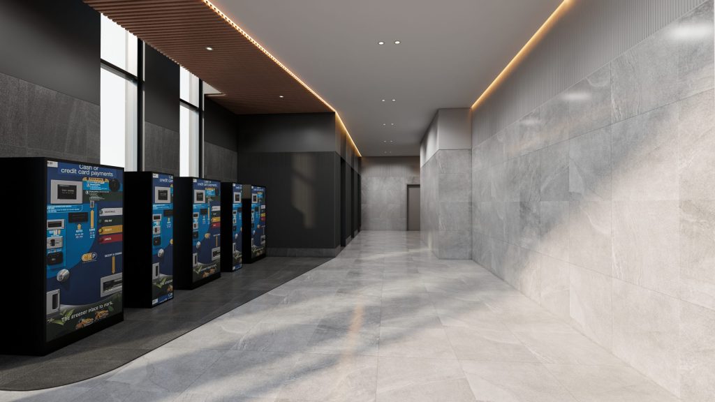 These concept renders were created for the commercial tenancy at the ground level of the Hillam-designed Vic Quarter development. Although the tenants opted for a different outcome, we were pleased with the rich, warm feel we created in our concept, with feature tiling and lighting effects throughout.