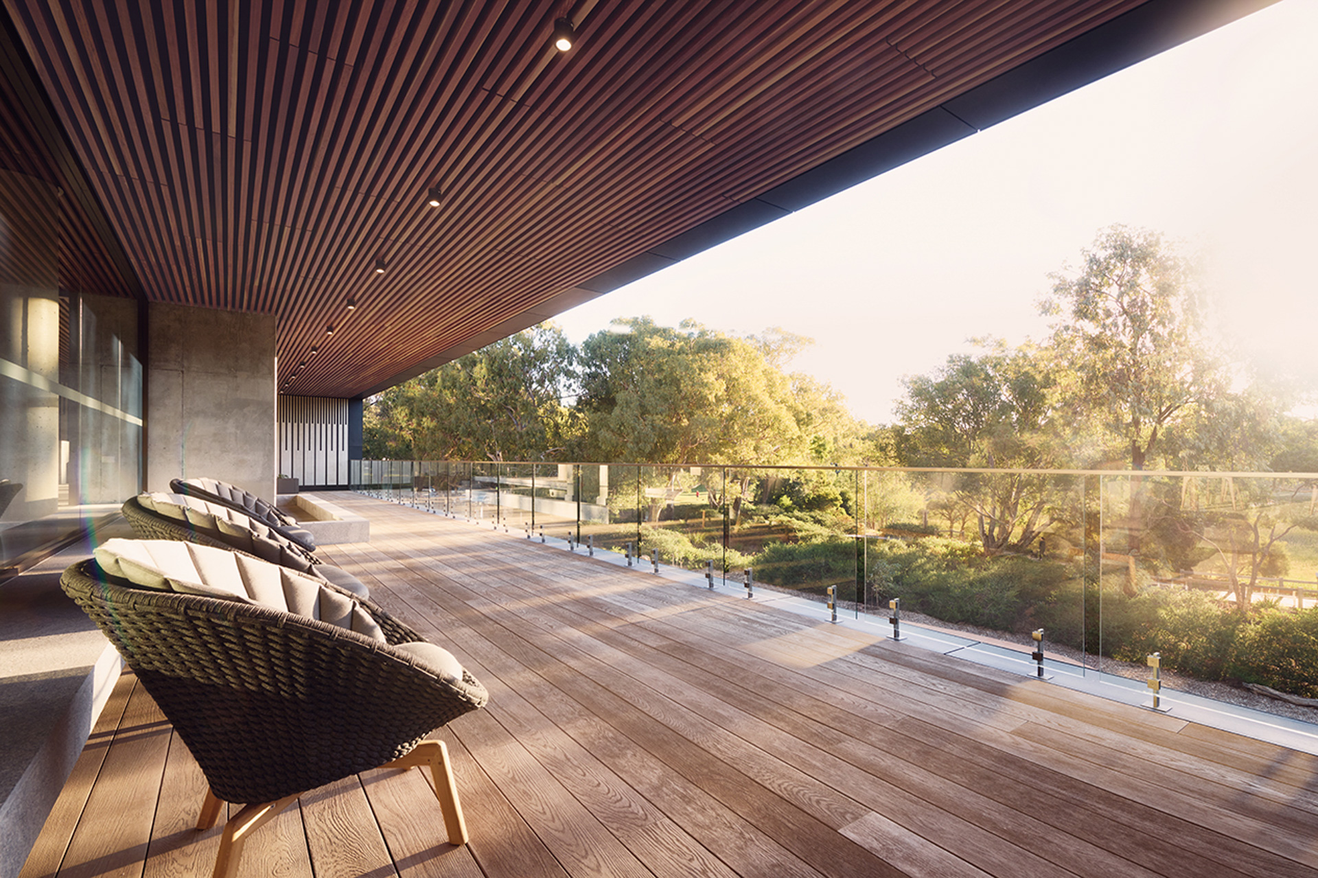 Eden Apartments has been designed by Hillam Architects in collaboration with Edge Visionary Living to reflect the active and refined lifestyle of the western suburbs, integrating the sophisticated coastal atmosphere with the contemporary architecture of the building.