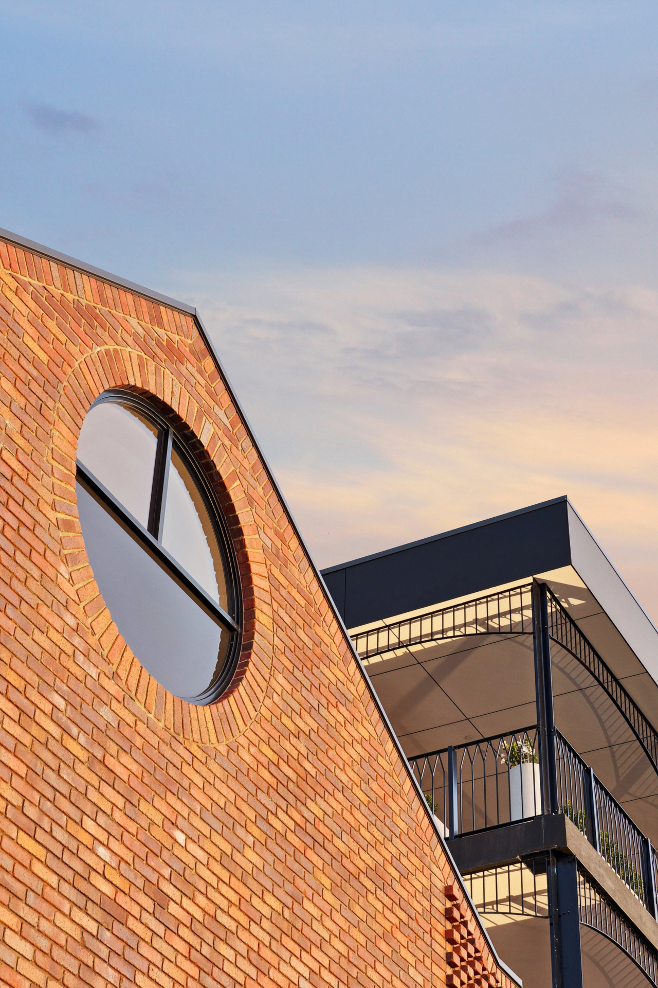 Field Street pays homage to its locale through its shared architectural language of red brick, arching balustrades and metal detailing framing the airy expanses of open verandas. The whole concept is designed to harmonise with the fabric of the character protection area and make a positive contribution to it, without resorting to pastiche.