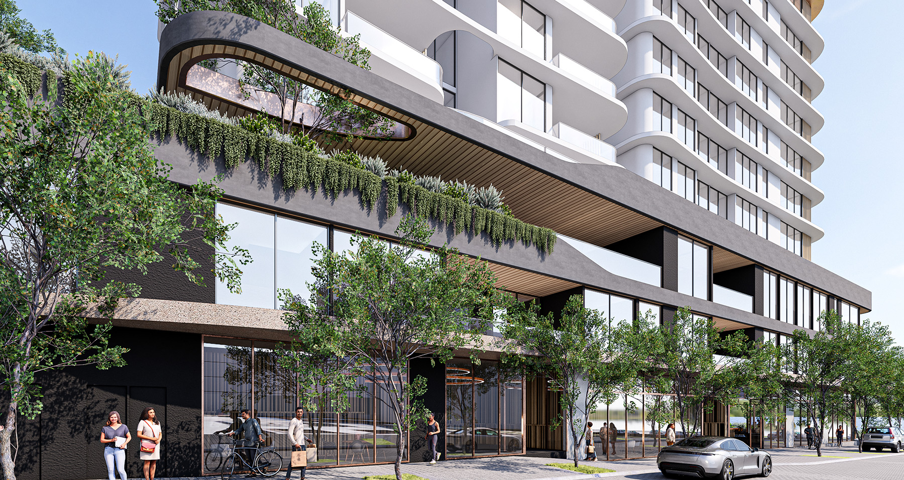 Along the Esplanade frontage, the development transitions to a more residential character, incorporating generous setbacks and landscaping to ensure a seamless interface with the neighbouring residential properties.
