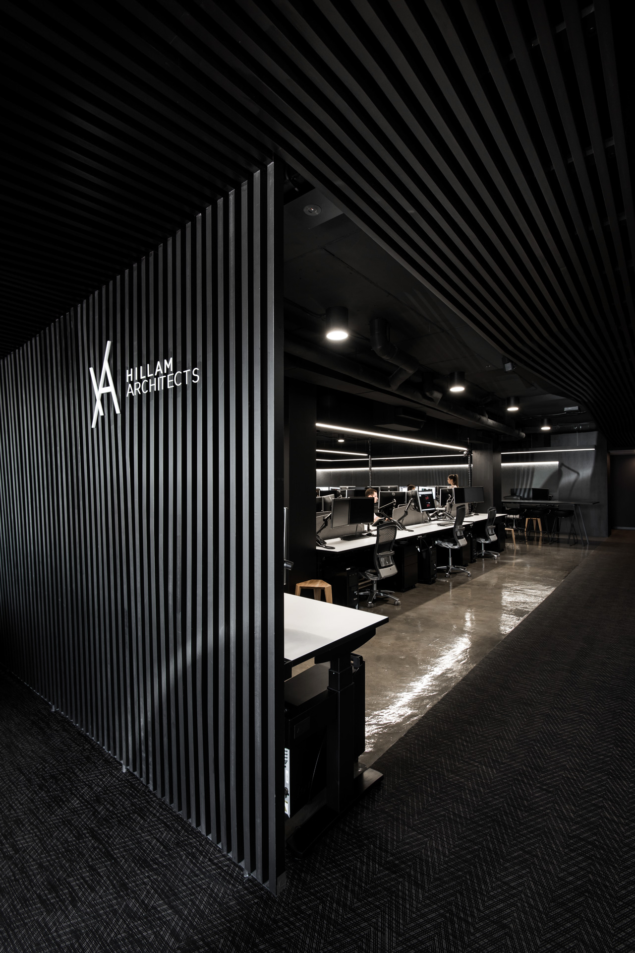 Hillam’s final build resulted in a multi-layered, textured environment. Housing 40 people, the flexible workplace has a series of openable spaces which extend into a large open area, combined with open plan sit-to-stand workstations promoting an Activity Based Workplace.