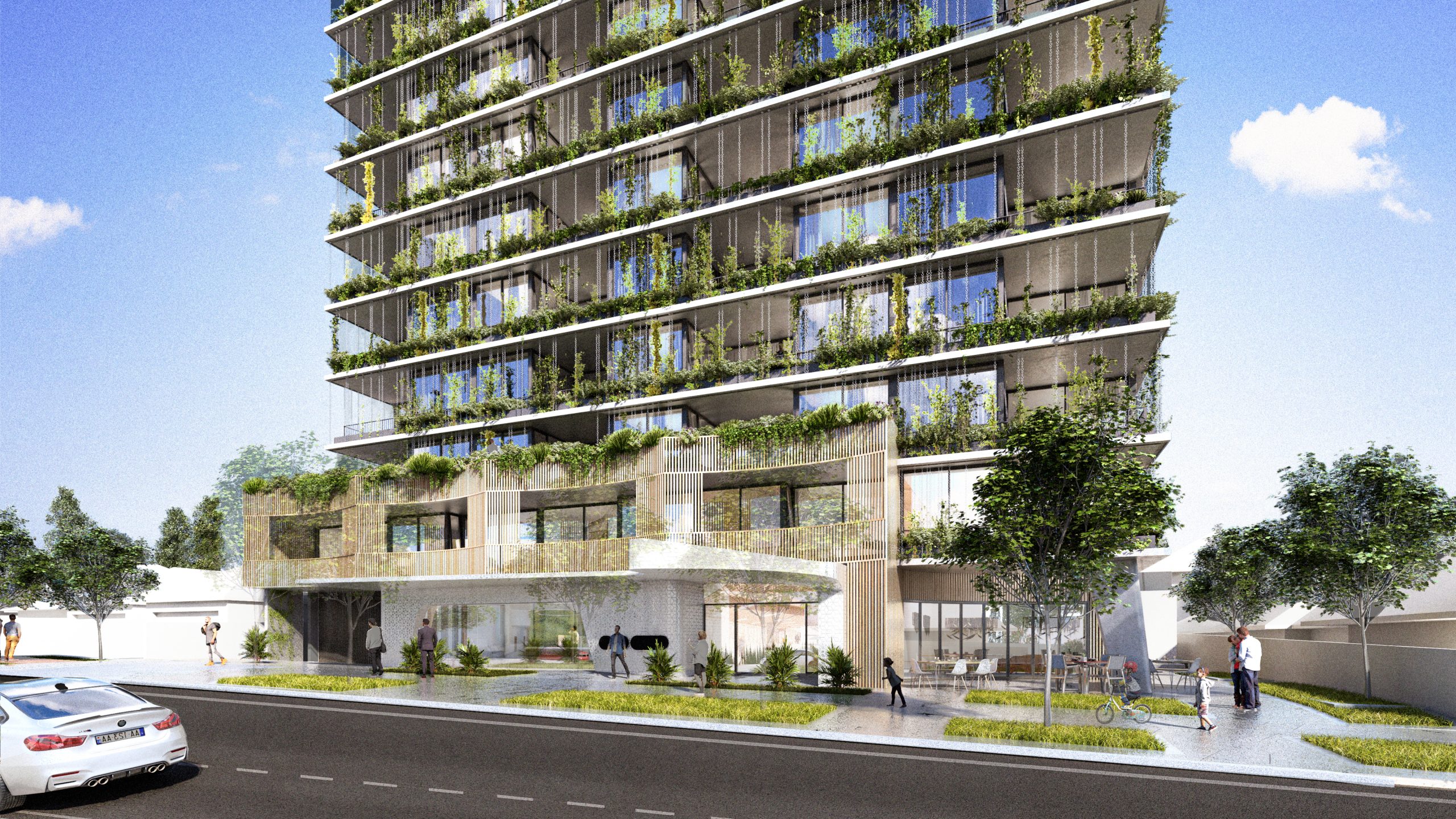 The proposed development is positioned within walking distance to the Canning Bridge Train Station and associated Activity centre, as well as Kwinana Freeway and Canning Highway, connecting the site to the greater metropolitan area of Perth. The proposal activates the street by introducing an interface of desirable commercial tenancies and interactive public artwork while also enhancing the resident’s amenity and experience of the podium with added facilities.