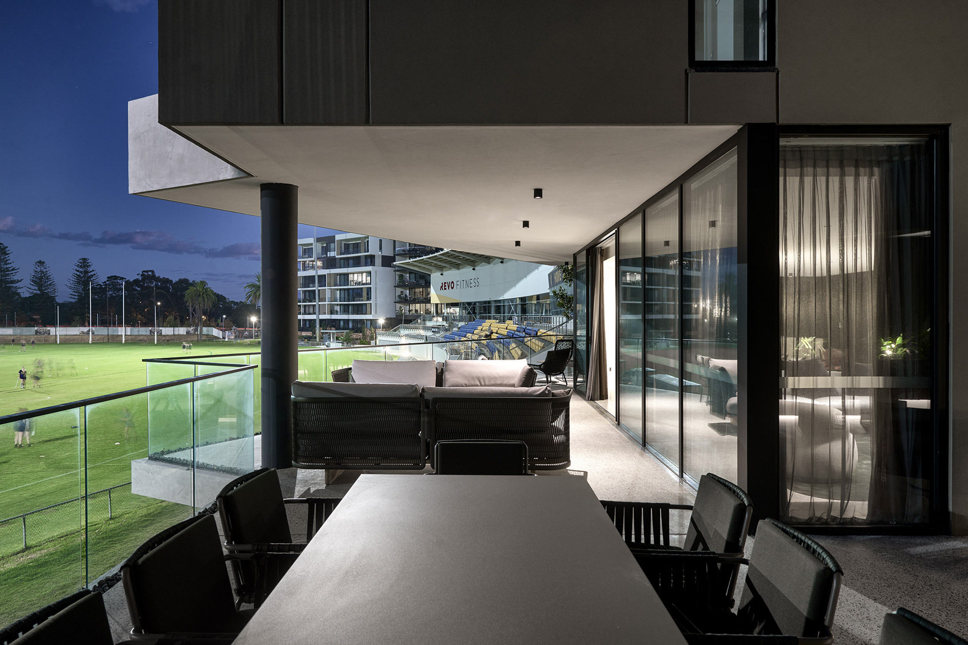 All apartments have been orientated to maximise views and capitalise on the limited access to northern light while responding carefully to the western sun, providing refined living with a responsive façade. Deep balconies, extensive screening and awnings ensure that solar heat gain is minimised to achieve the +1 energy targets set within the precinct.