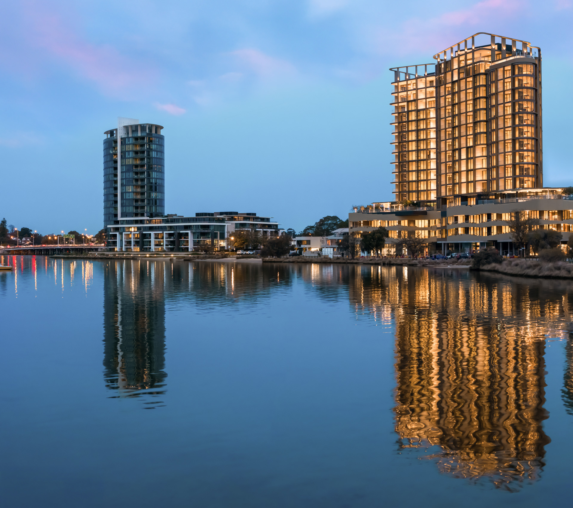 Rivière Residences by Hillam Architects and Edge Visionary Living is a progressive new riverside precinct on Canning Beach Road in Applecross. This premium location is ideally suited to the Edge / Hillam brand, which focuses on delivering apartments that replicate the expectations of discerning owners who are used to living in premium quality homes in premier suburbs.