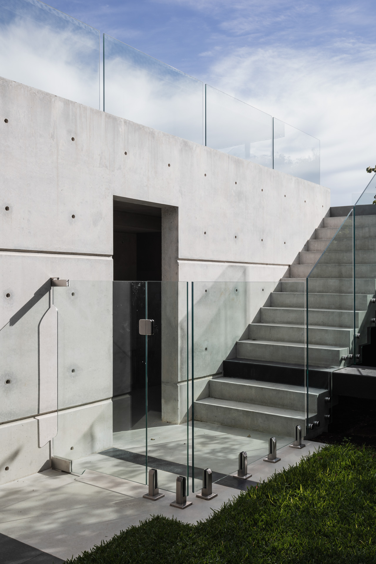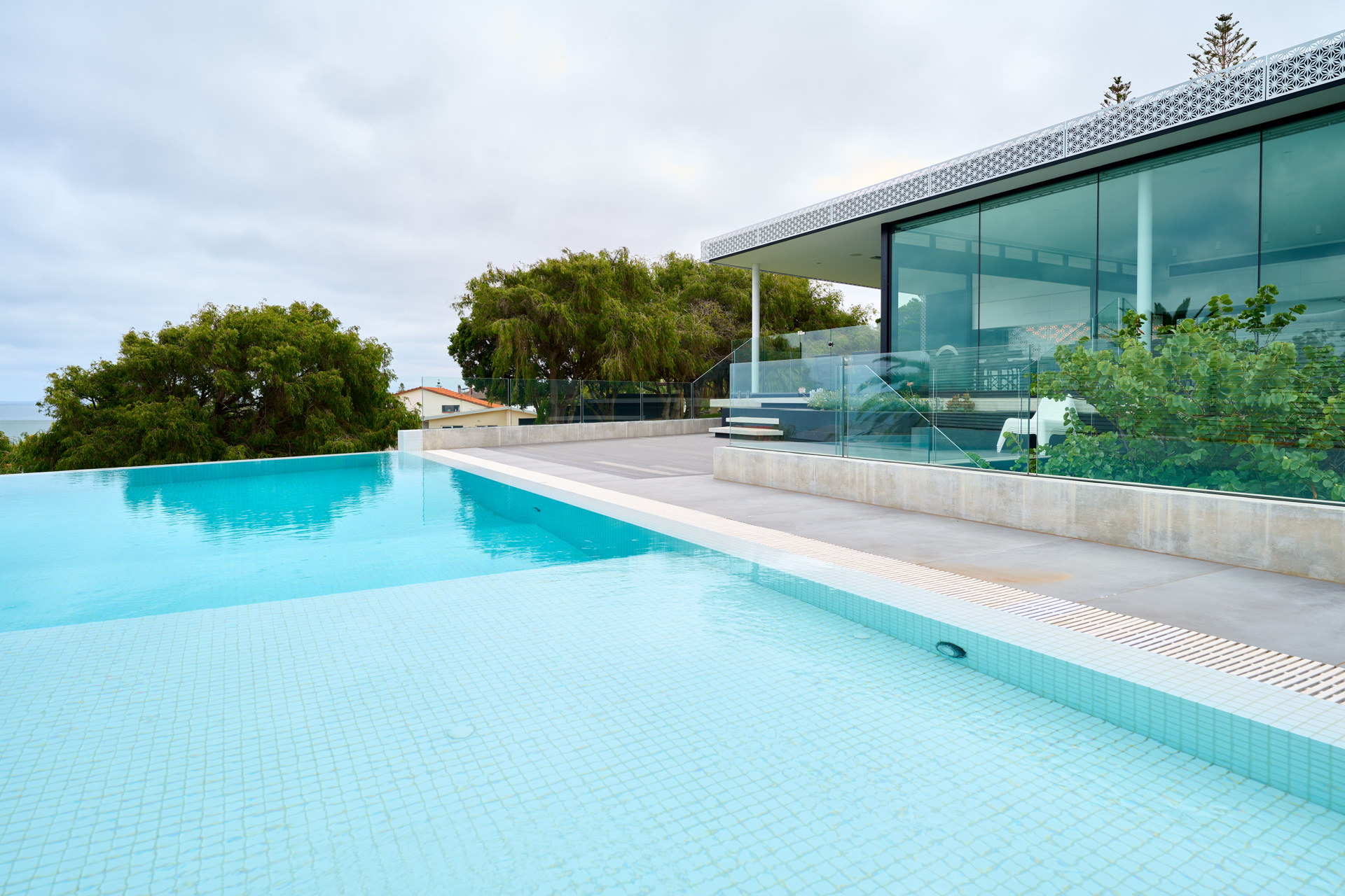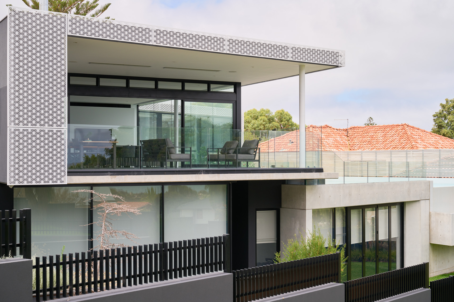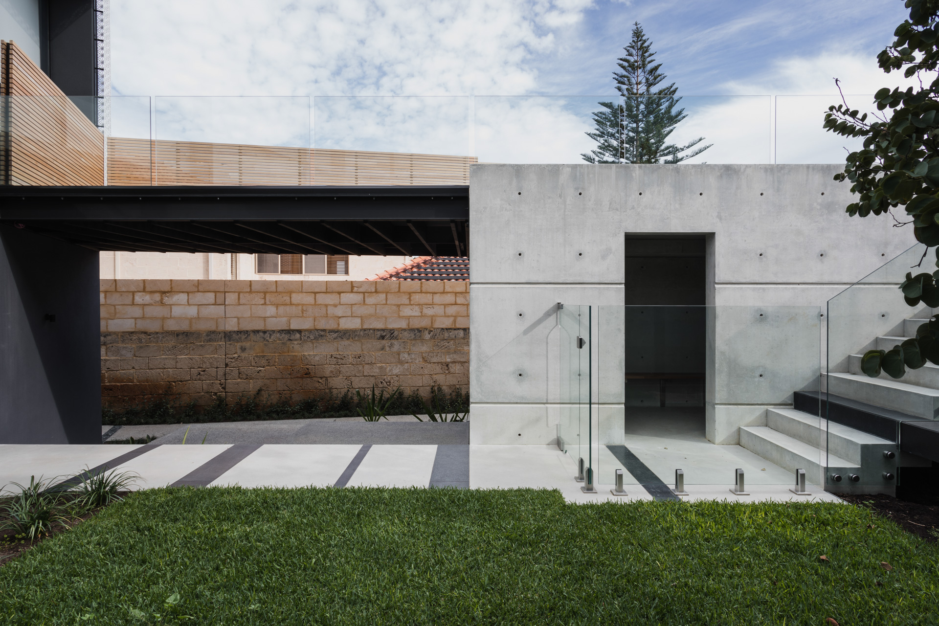 The client is passionate about a healthy living, fitness and martial arts after spending earlier years in Japan so extensive space was given up to a large gym and ‘dojo’ room with private garden. Upstairs, views to the adjacent park and Rottnest Island are captured where the main living area spills seamlessly to outdoor entertaining areas that step down to the pool deck. A bedroom wing carefully separates the master suite from the children’s’ room with subtle geometry.