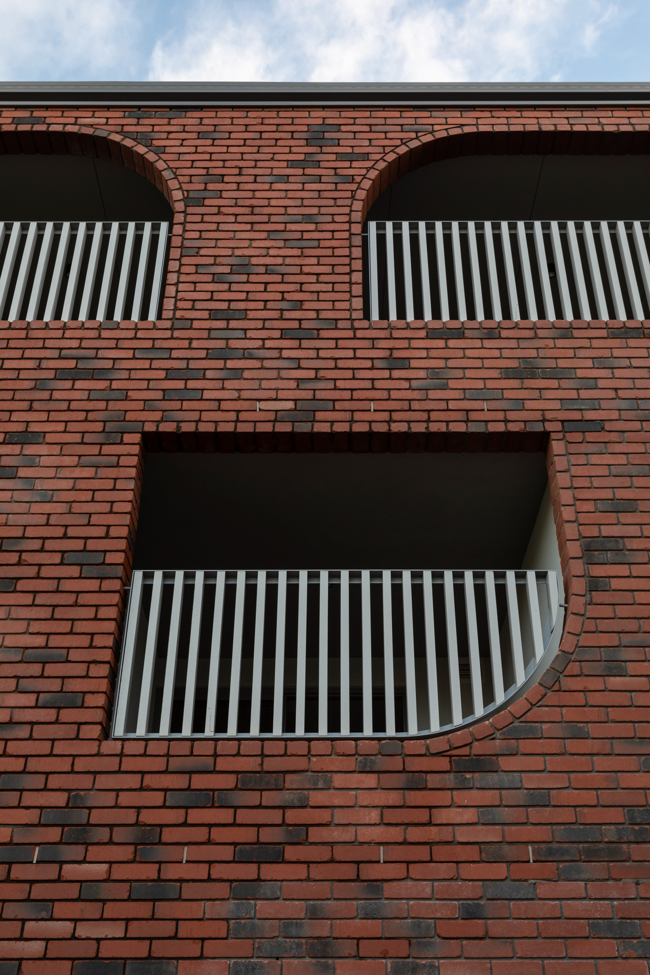 Red brick, corten and wide-pan metal cladding are in keeping with materials historically prevalent in the area. Sharp awnings, double-height openings and arched windows are architecturally striking whilst remaining sympathetic to the urban fabric.
