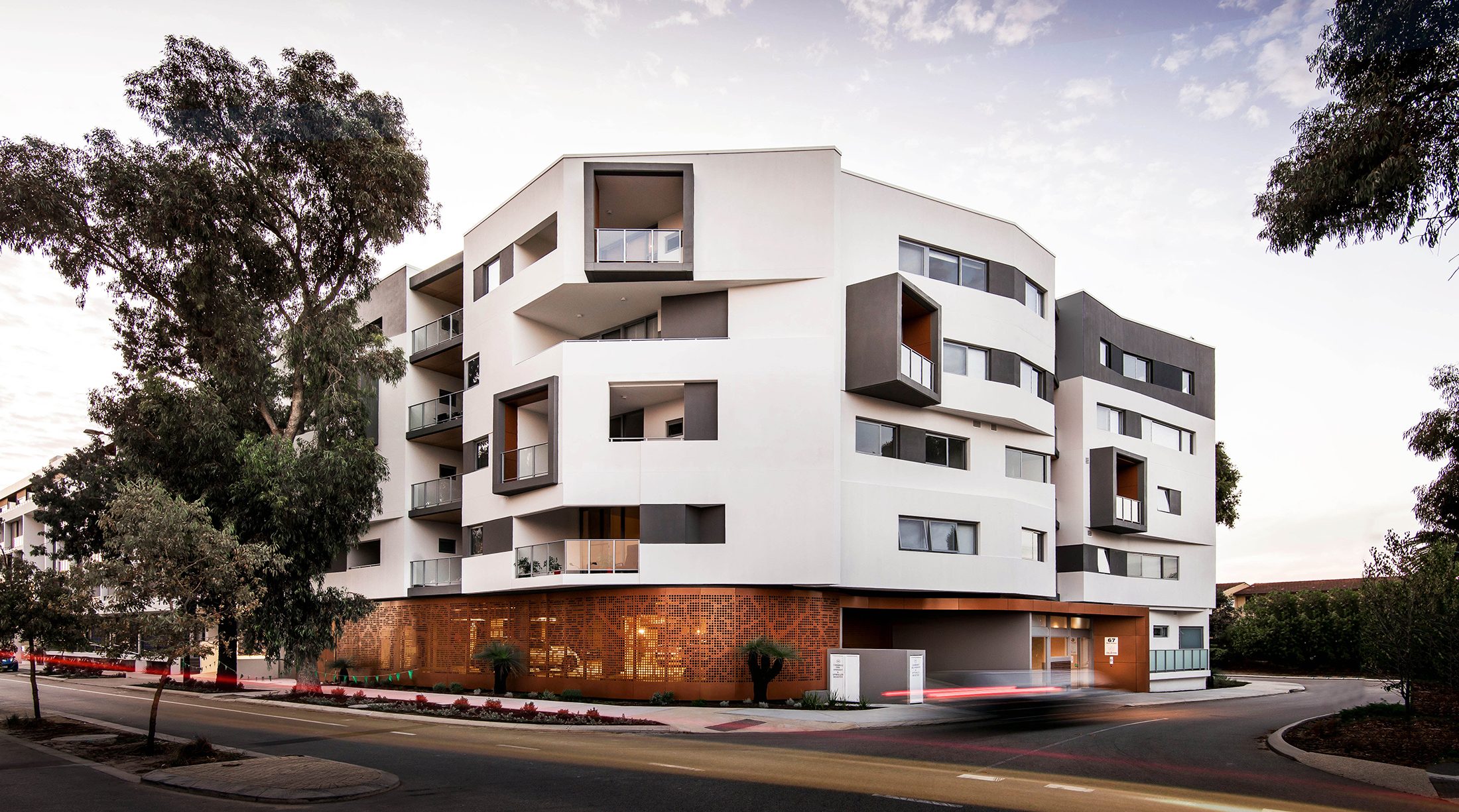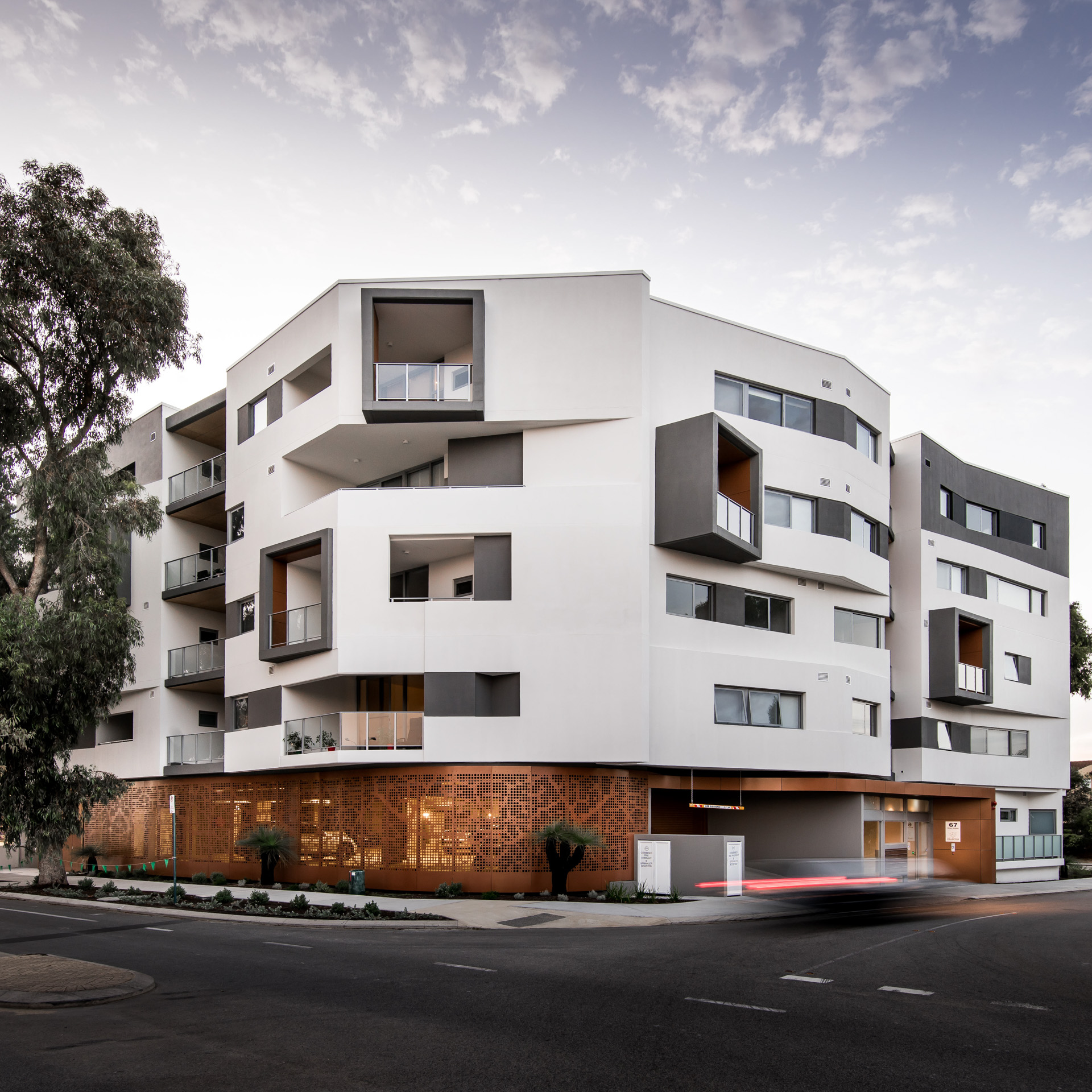 Our clients have responded well to the project as it manages to achieve a high yield, relative to the restricted size and challenging shape of the site. Components are utilised in creative and unusual ways, reinforcing the design. An undulating, perforated-metal screen, inspired by the local flora, softens the building’s podium and addresses the streetscape.