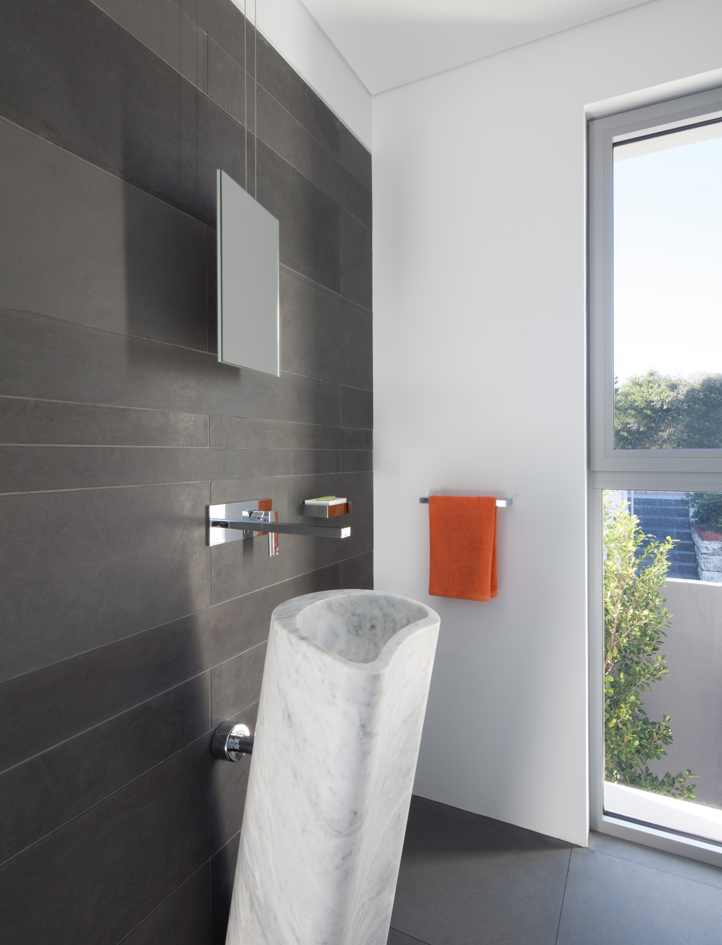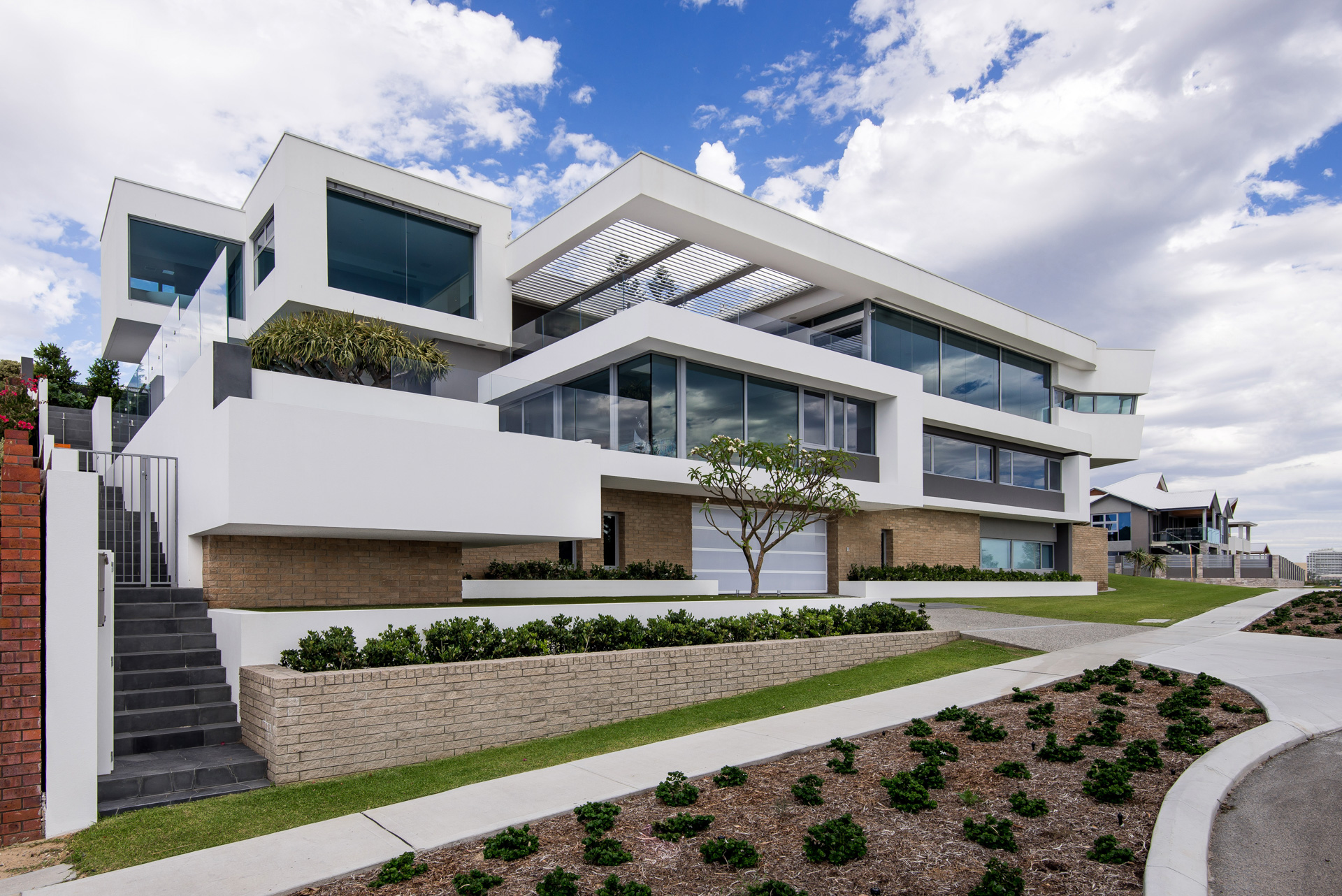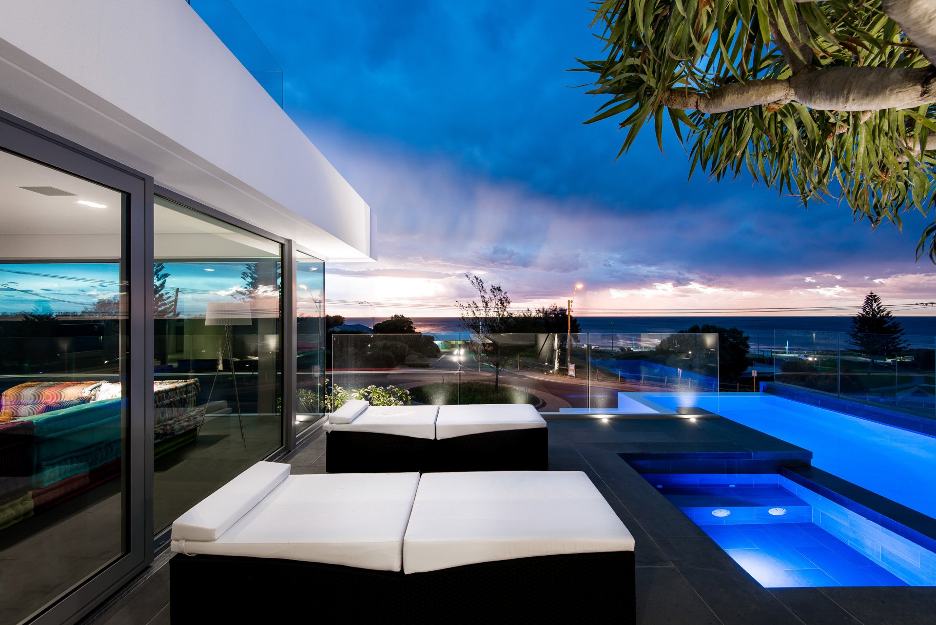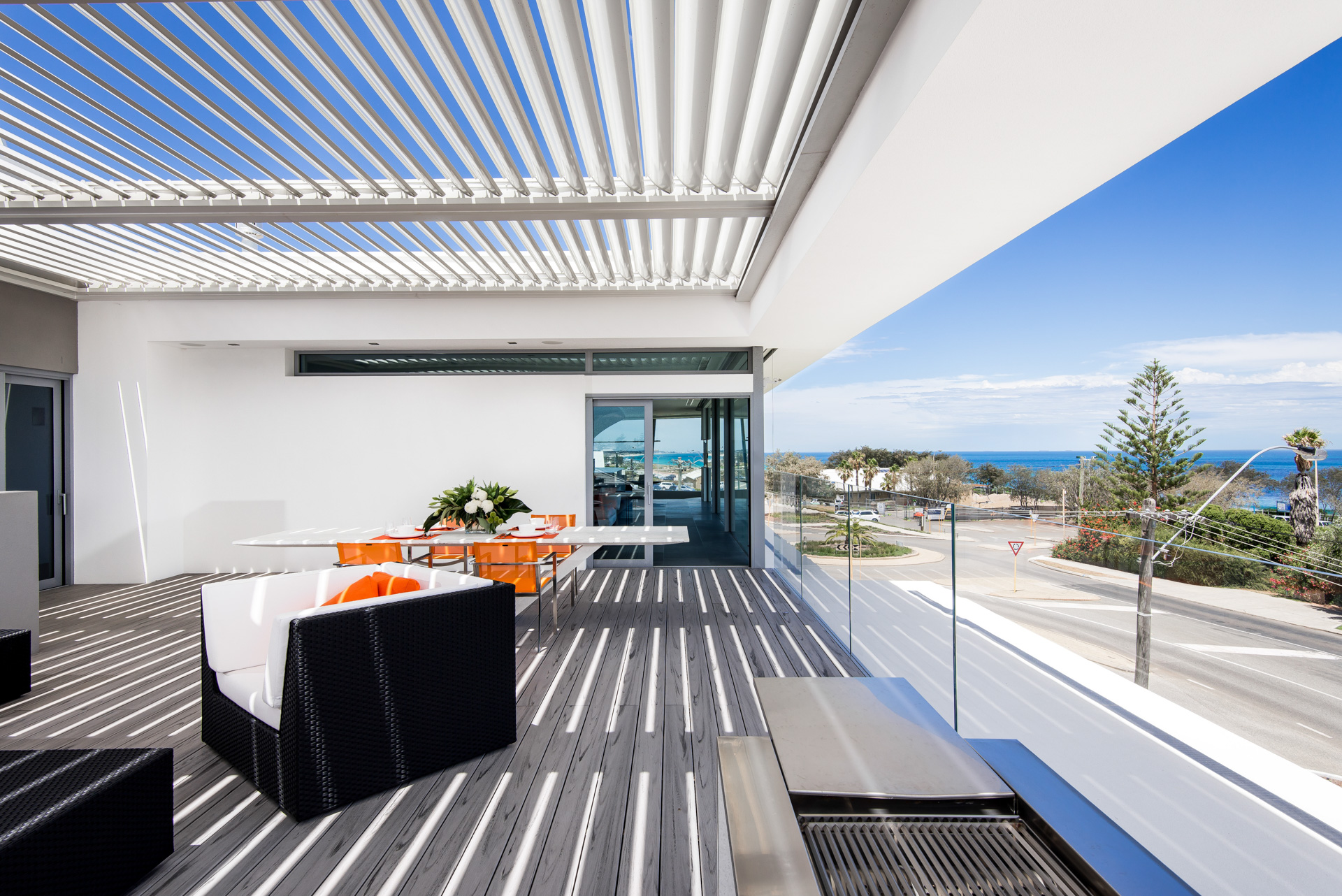 Our design uses materials chosen to withstand the harsh coastal conditions and also features many sustainable elements. Conscious of heat gain from Western facing glass, a combination of external Vental blinds, double internal blinds and automation maximize the control of unforgiving direct light to living spaces. Importantly, all sustainable measures are seamlessly integrated without compromising design outcome or quality; an approach Hillam Architects adopts with its projects.