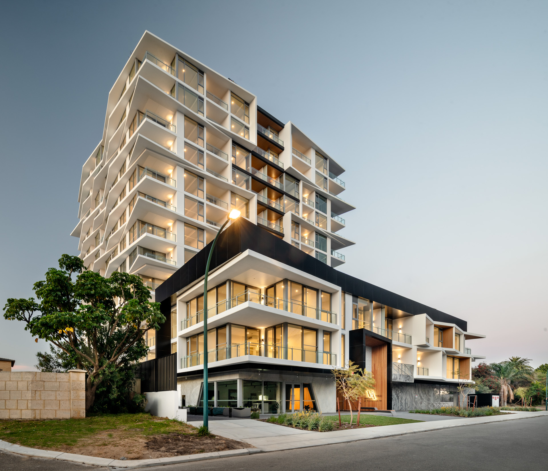 Vantage Riversedge on the Swan River at Rivervale is a thirteen-storey residential tower. Developed by Edge Visionary Living in collaboration with Hillam Architects, its striking design features a distinctively-sculptured, multi-faceted façade with spectacularly bold multi-directional angles to make an architectural statement with instant street appeal.