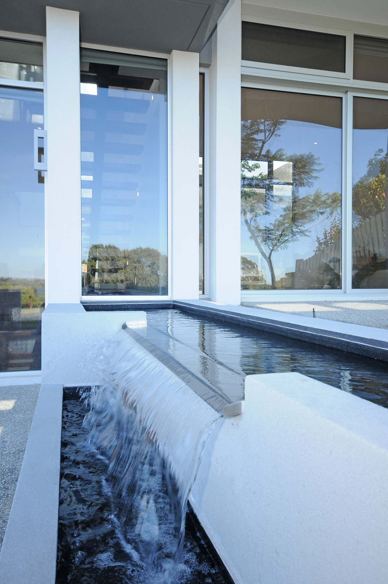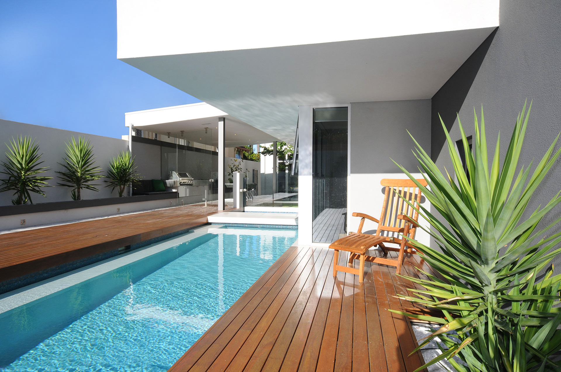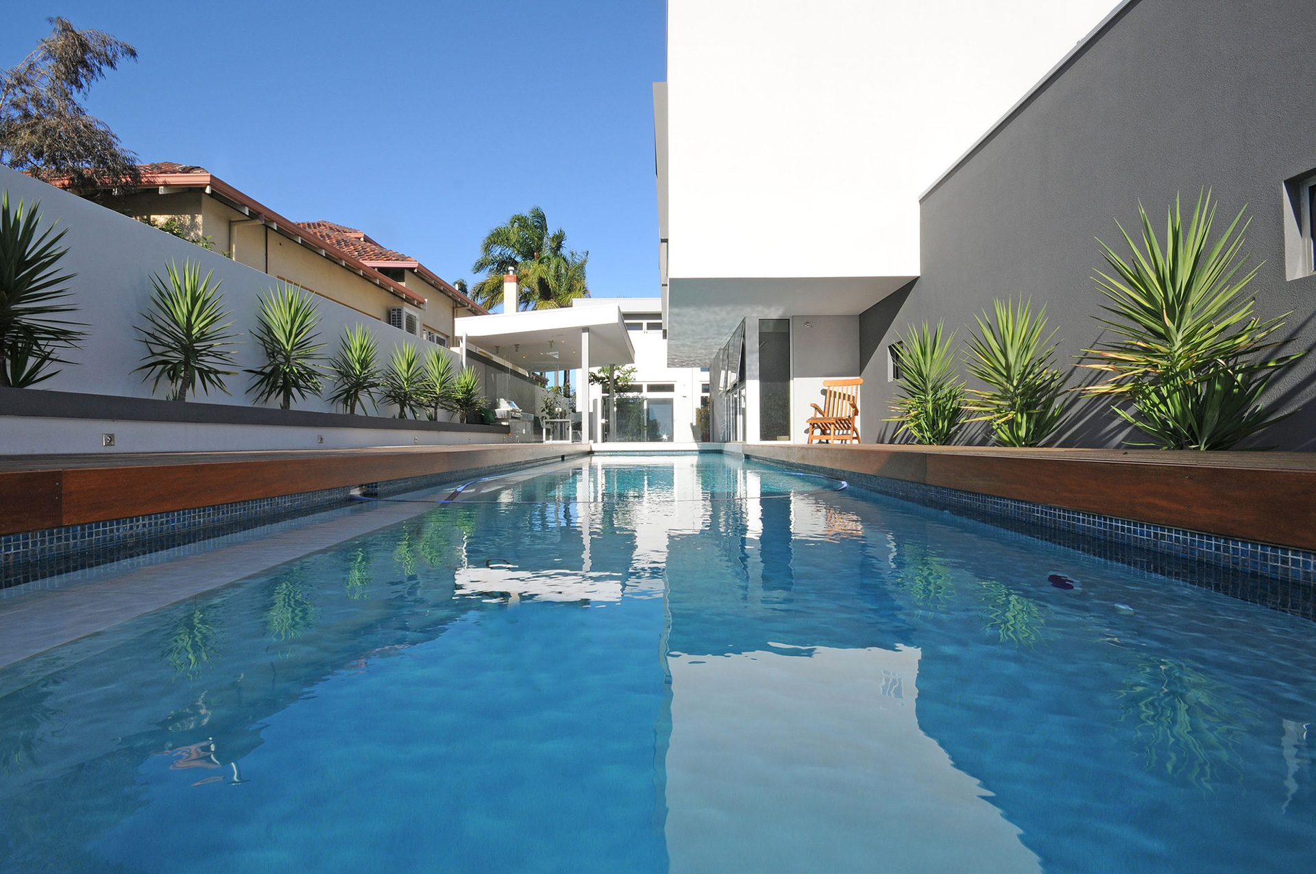 At the rear of the home, a luxurious lap pool terminates in an open-planned cabana which is set back from the house to bring unobstructed light into the internal spaces.
