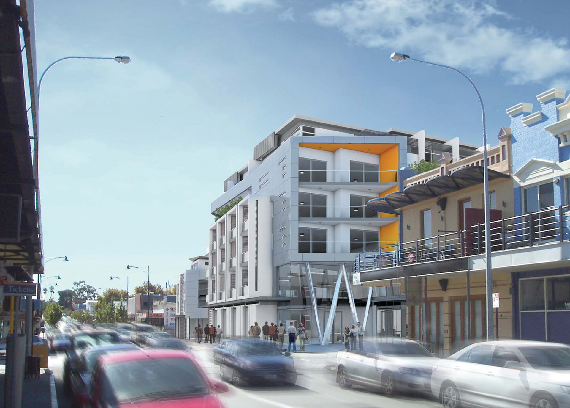 Vibrant colours and large multi-storey building elements are incorporated into the design to interact with the street and complement the high public-use of the area.