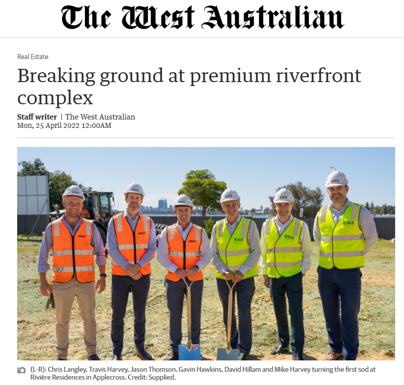 Following strong off-the-plan sales at Edge Visionary Living’s Rivière Residences, PACT Construction has commenced works on the first two of three buildings at the riverfront development in Applecross this month.
