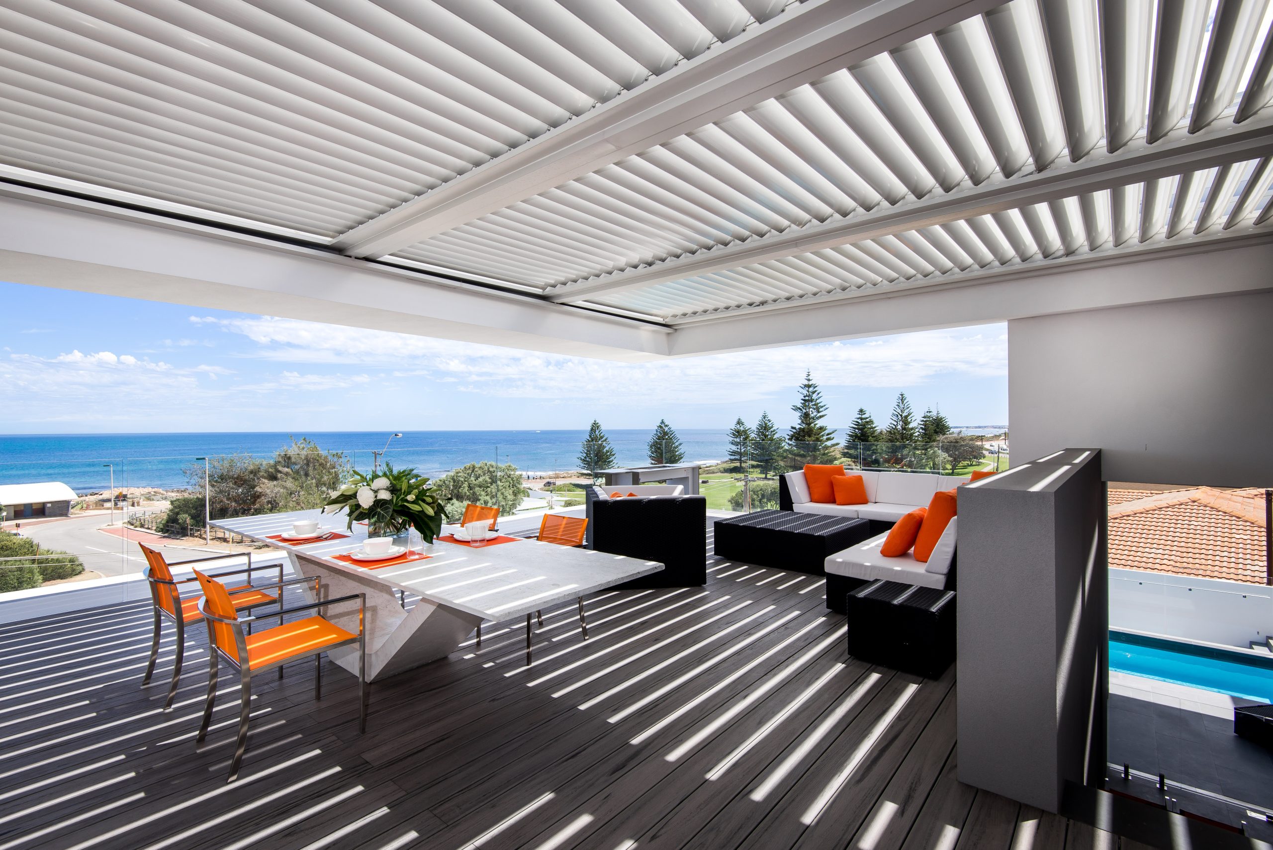 Our design uses materials chosen to withstand the harsh coastal conditions and also features many sustainable elements. Conscious of heat gain from Western facing glass, a combination of external Vental blinds, double internal blinds and automation maximize the control of unforgiving direct light to living spaces. Importantly, all sustainable measures are seamlessly integrated without compromising design outcome or quality; an approach Hillam Architects adopts with its projects.